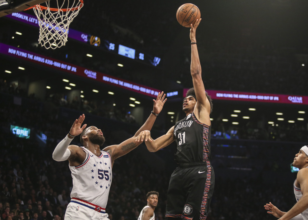 篮网时代的阿伦属于纯蓝领中锋,主要负责篮下终结和防守。因为不具备自主进攻能力,防守又达不到争夺最佳防守阵容名额的水准,阿伦并不被篮网视作非卖品。2020-21赛季,在阿伦生涯第4年面临续约时,他沦为篮网换取哈登的筹码,错过了与哈登成为队友的机会。